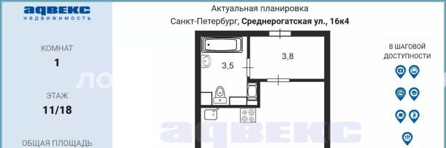 1-комнатная квартира: Санкт-Петербург, Русановская улица, 18к6 (36.1 м²)