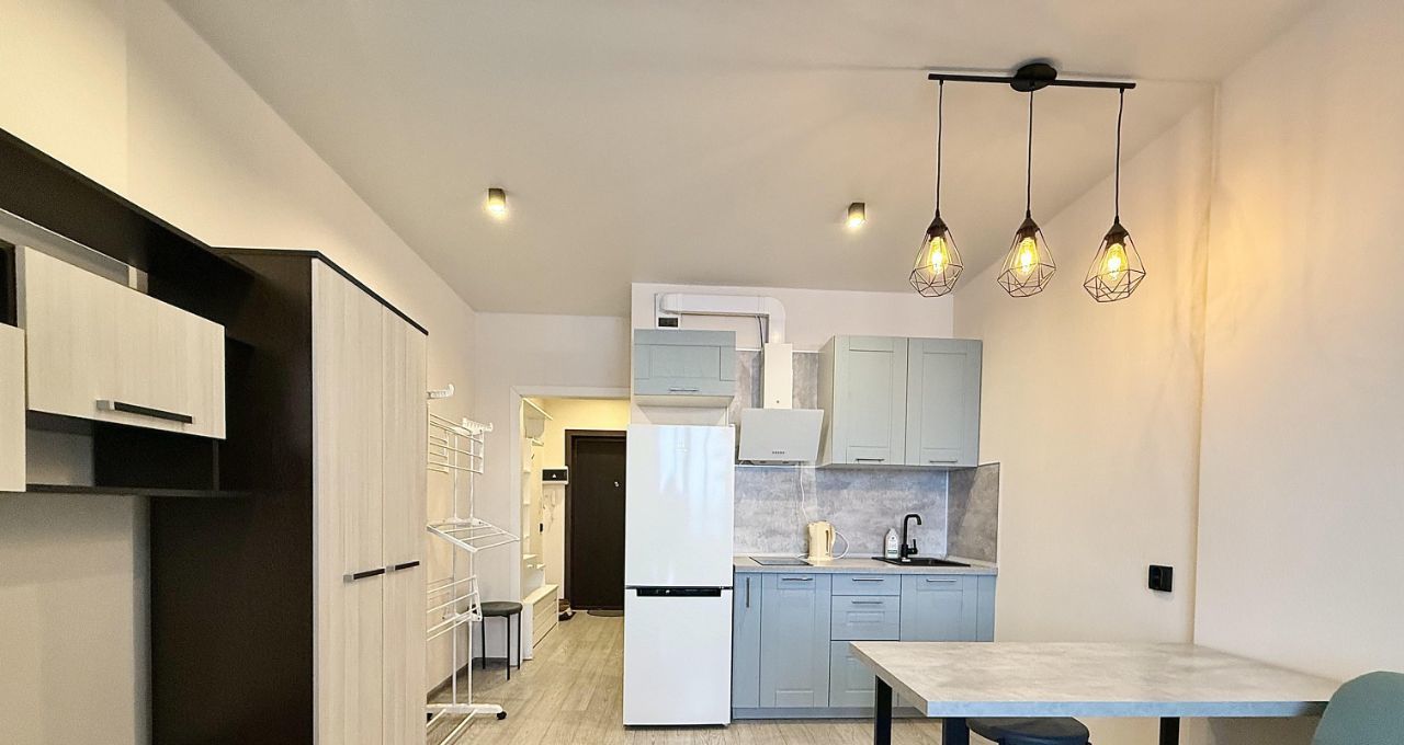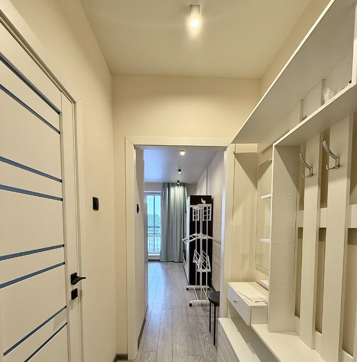Сдаётся студия в новом жилом комплексе. Есть вся необходимая мебель и техника. Коммунальные услуги оплачиваются отдельно.