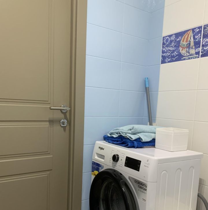 В ванной стиральная машина Whirlpool, полноценная ванна.