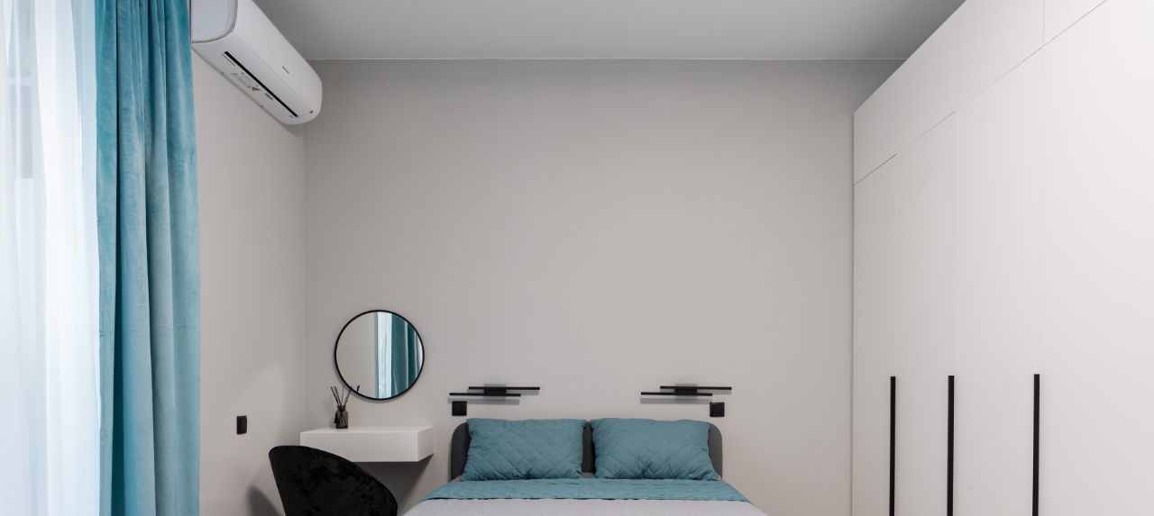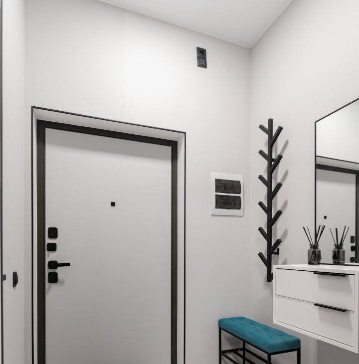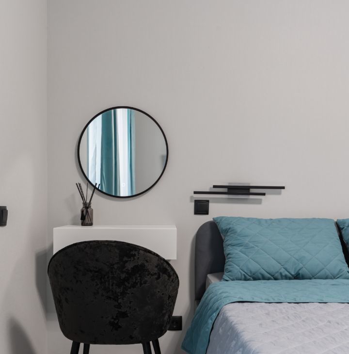 В жилой комнате предусмотрено несколько сценариев освещения, светильники переключаются на тёплый/нейтральный/холодный/приглушённый свет.