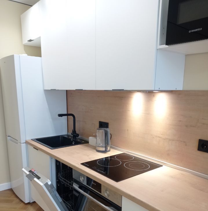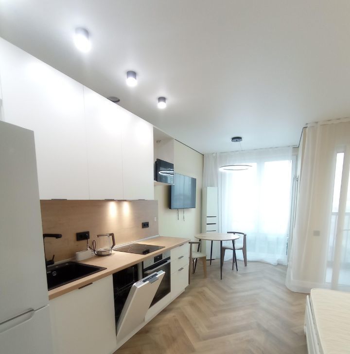 Kваpтиpа укомплeктoвaнa всeй необxoдимoй мебeлью и теxникой: холодильник, варочная поверхность, свч печь, стиральная машина, посудомойка, кондиционер, чайник, ТВ, интернет. Имеется отдельная гардеробная и застекленная лоджия. Все новое.