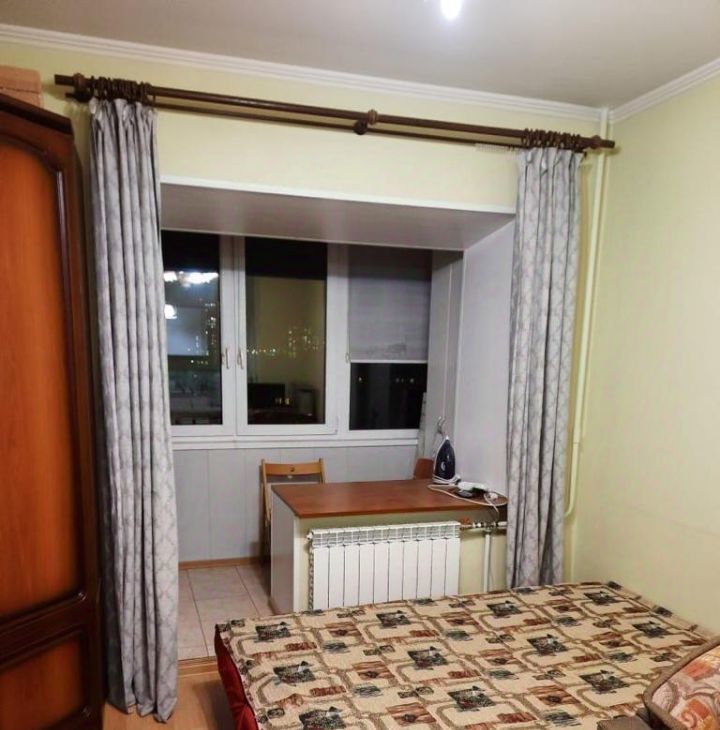 Мебельная стенка - вместительный шкаф, диван двухспальный Бединге Икеа, стол обеденный, 2 стула, кухня мин. Телевизор, холодильник, стиральная машина, электроплита на две комфорки, без духовки,сушилка для белья, гладильная доска. Для одного арендатора, дети по согласованию. В квартире курить нельзя. Без животных!