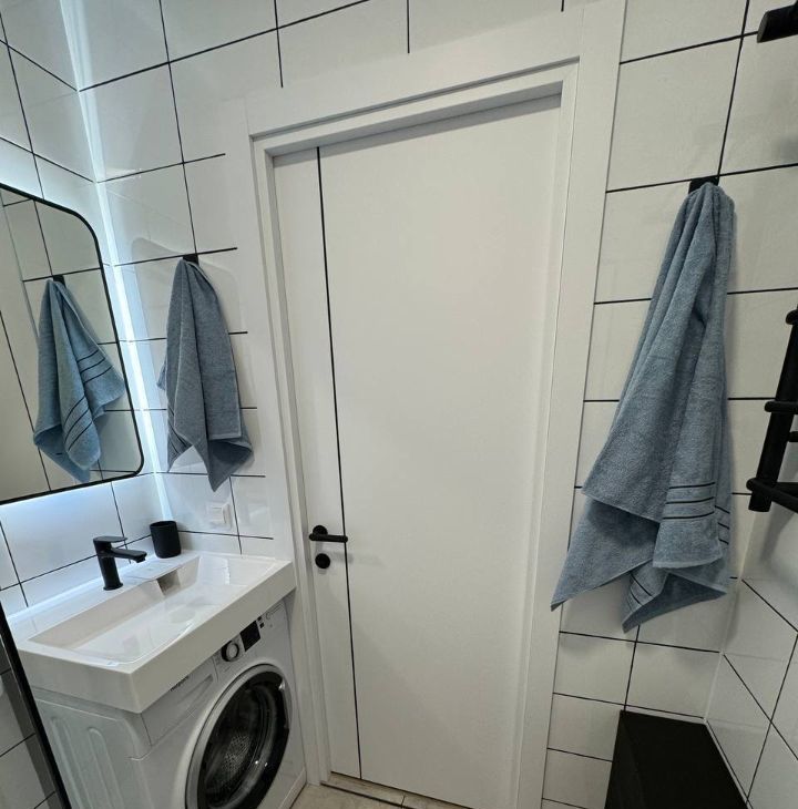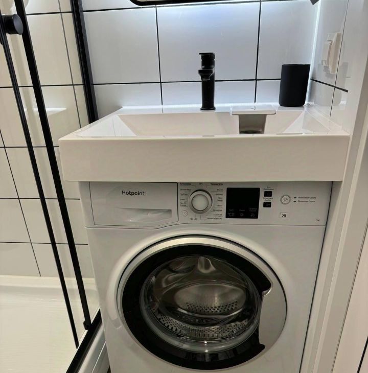 • стиральная машина установлена в ванной, а не на кухне;