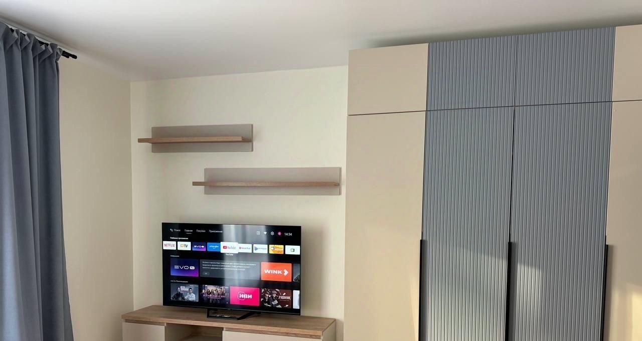 • много мест хранения: в комнате большой шкаф 60*200, тумба под ТВ с ящиками, кровать с подъёмным механизмом (вмещает крупногабаритные вещи), гарнитур и шкаф в прихожей, полки (на кухне, в санузле, над ТВ, у кровати), глубокий шкафчик в санузле, кухонный гарнитур;