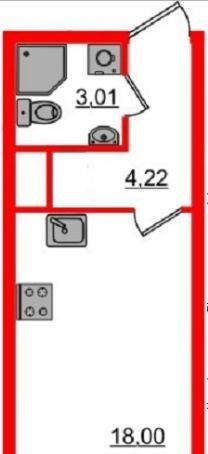 Студия Санкт-Петербург ул. Тосина, 6 (26.88 м²)