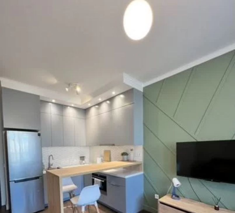Студия выполнена с дизайнерским ремонтом и полностью укомплектована всей необходимой мебелью и техникой. В комнате и на кухне вы найдете всё для комфортного проживания: холодильник, телевизор, посудомоечная машина и стиральная машина. В ванной комнате установлена душевая кабина. Лоджия позволяет дополнительно обустроить место для отдыха или хранения.