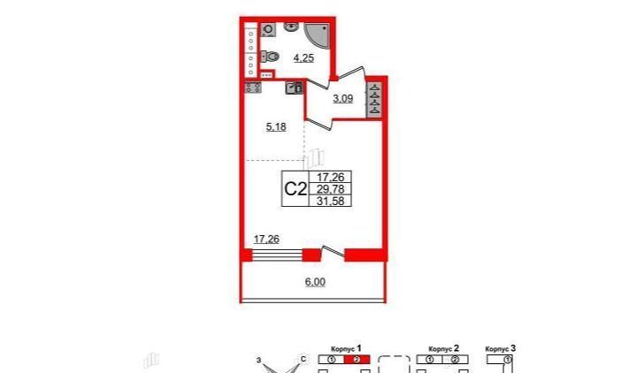 Студия Санкт-Петербург ул. Ультрамариновая, 4 (32.0 м²)