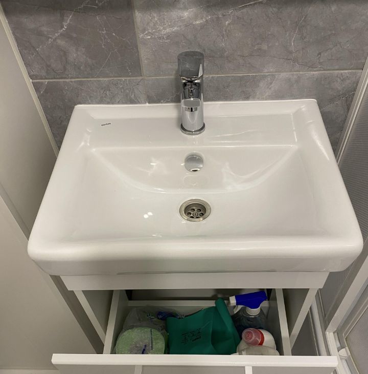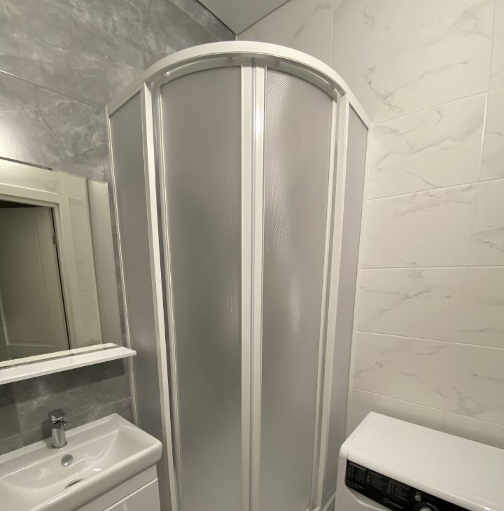 В ванной комнате организовано место для хранения, корзина для белья. Стиральная машина с большим набором программ и классной опцией стирки за 15 мин.