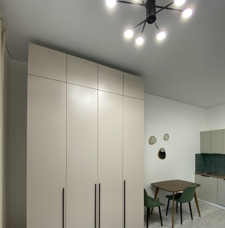 Преимуществом студии является высота потолков 3 метра. Такая высота предусмотрена только на последних этажах данного ЖК. Просторно и над вами гарантированно никто не будет топать и двигать мебель.