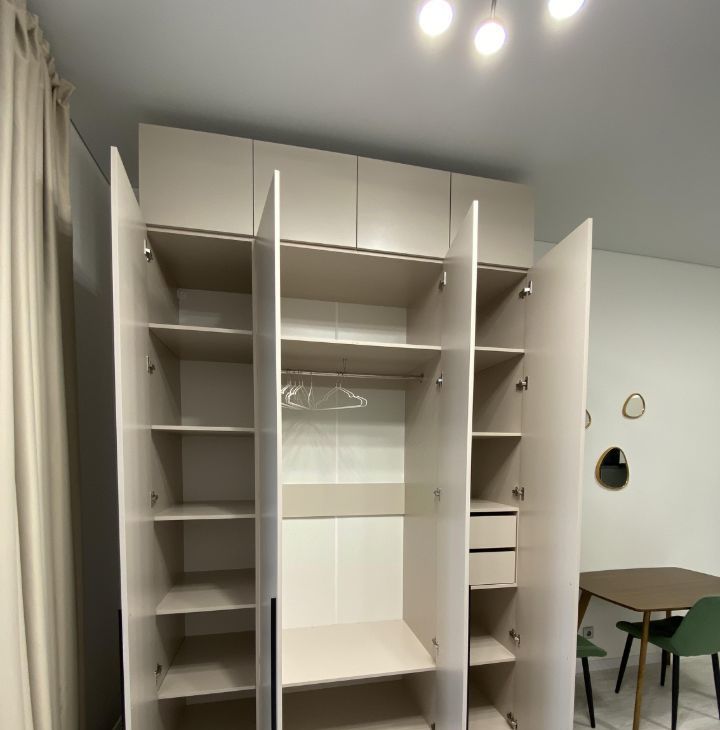 Действительно вместительный шкаф глубиной 60 см с антресолями. Эффективно решит вопросы хранения вещей и, как следствие, сохранения порядка и отсутствия визуального шума.