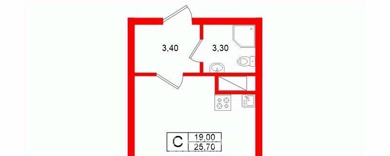 Студия Санкт-Петербург ул. Ультрамариновая, 5 (25.7 м²)