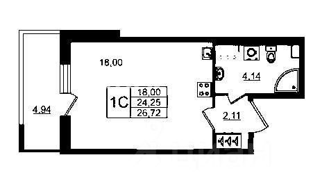 Студия Санкт-Петербург ул. Ультрамариновая, 5 (26.72 м²)