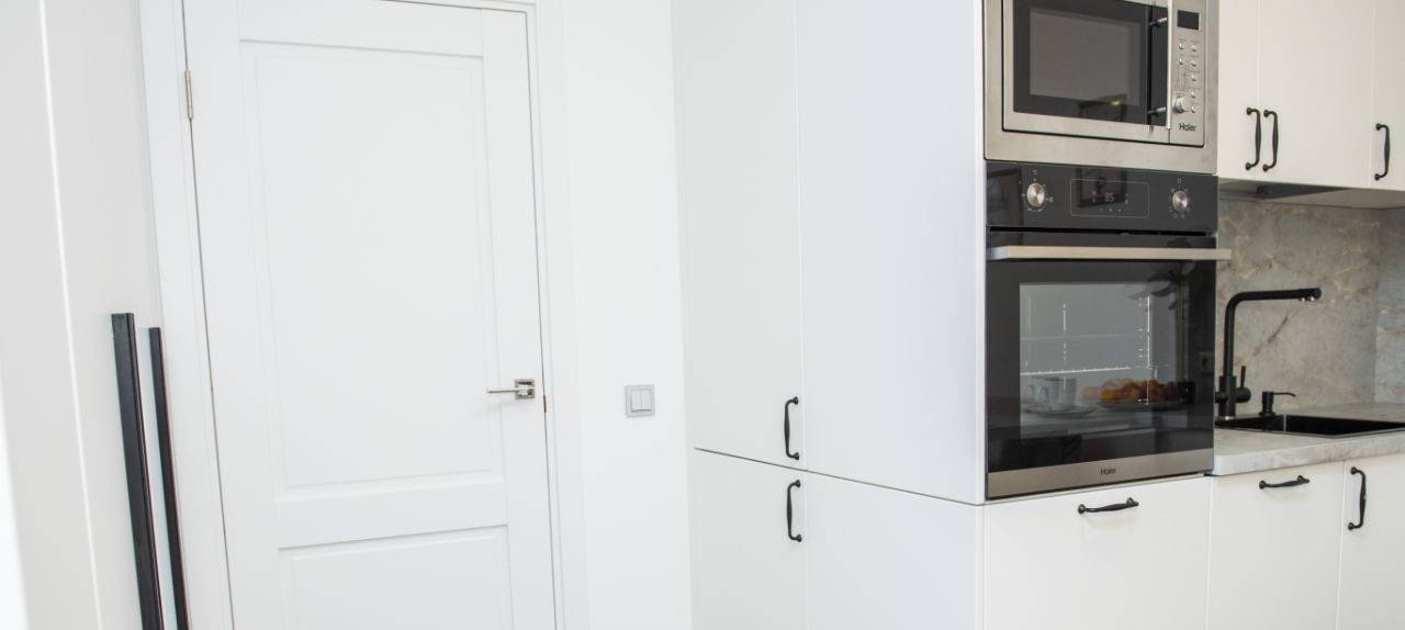 - Современная кухня со всей необходимой бытовой техникой Haier (холодильник, микроволновка, плита, духовка, посудомойка, стиральная машинка)