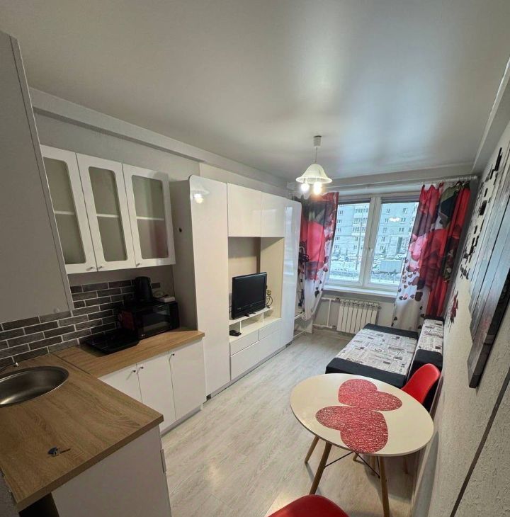 Площадь квартиры — 16,2кв. м. Высота потолков 2,6 метра. До станции метро Комендантский проспект можно дойти пешком всего за 6 минут.