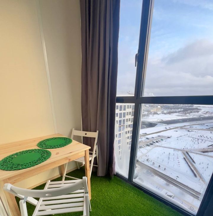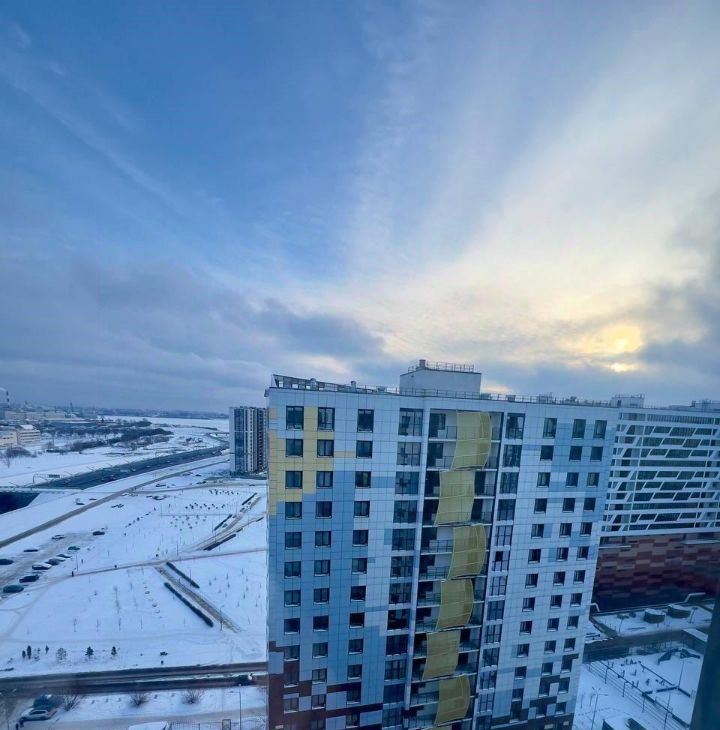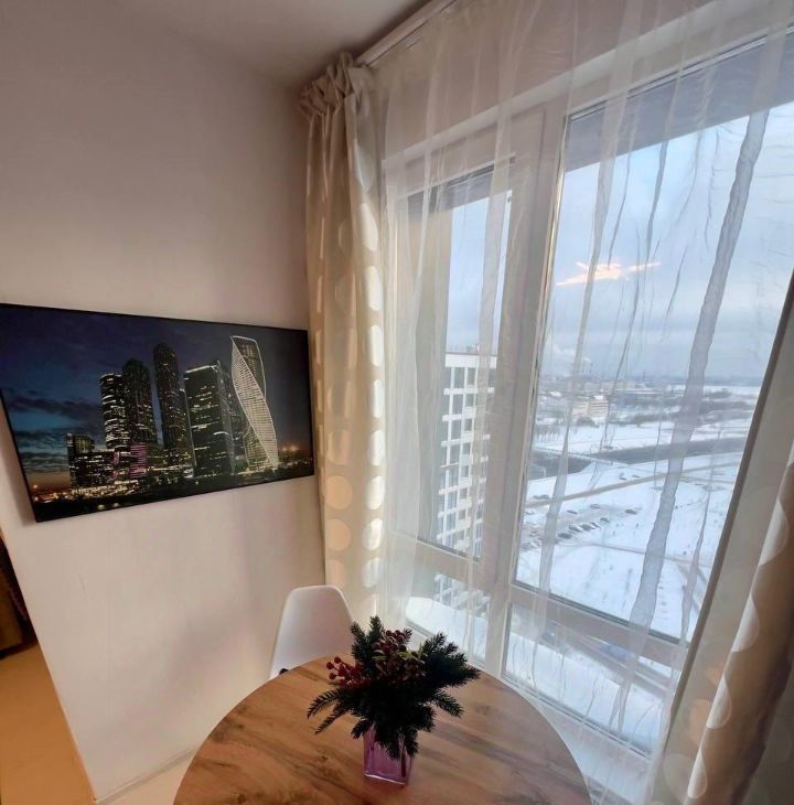 Сдается на длительный срок чудесная видовая квартира-студия по адресу: улица Вадима Шефнера, дом 10, к. 1, стр. 1, с панорамными окнами на 18 этаже.