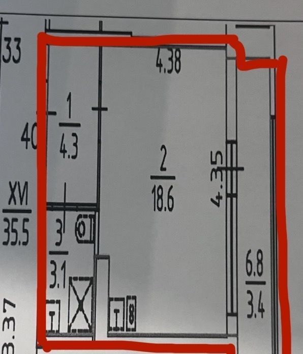 Площадь 26,0 кв.м + лоджия площадью 6,8 кв.м