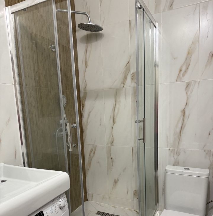 Студия оснащена диваном- кроватью для двоих, также имеется просторный шкаф, в нем достаточно места для хранение ваших вещей! В ванной комнате установлена душевая с тропическим душем.