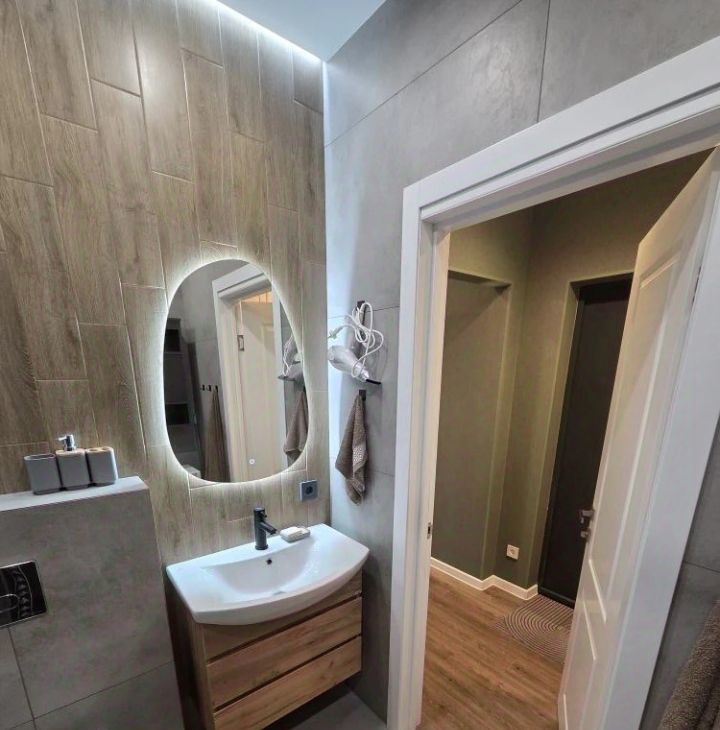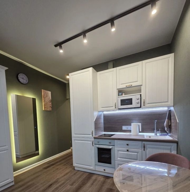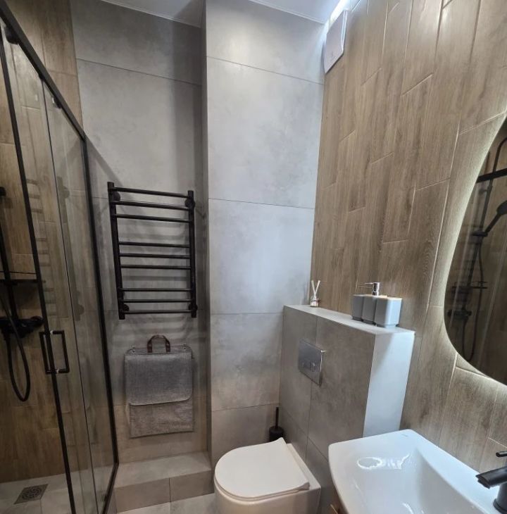 Новая квартира с новым ремонтом, всё продумано. Продуманная система хранения для жизни, а не для гостиницы. Всё есть, всё новое. На фото всё видно, полностью оборудованная квартира. Для одного или пары . Без детей и животных. Собственник.