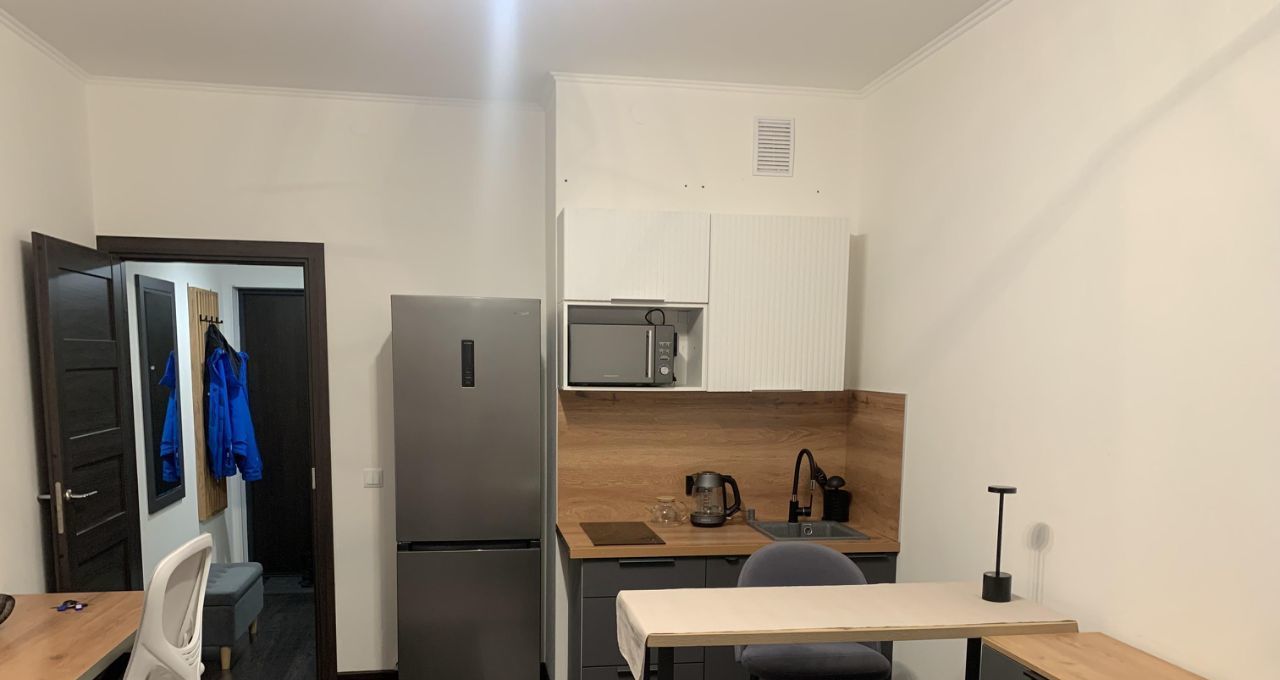 Изумительная студия от собственника Сдаю педантично аккуратным жильцам (один или два человека). В квартире есть все, необходимое для комфортного проживания. Новый дом, современный микрорайон с развитой инфраструктурой. Просмотры 14-15 февраля.