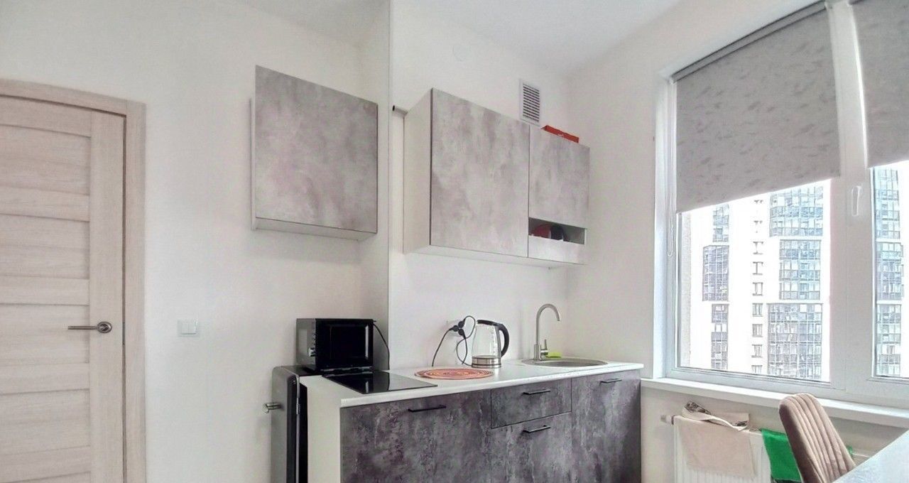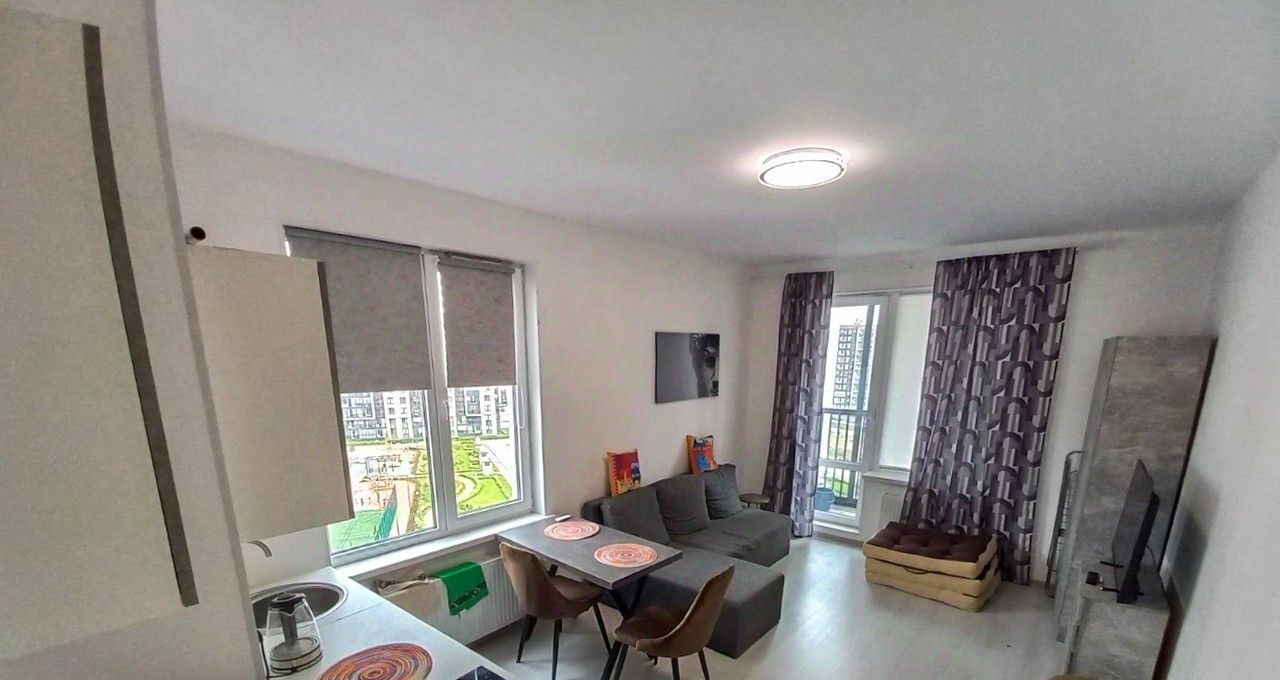 Сдаётся светлая квартира-студия с евроремонтом, совмещённым санузлом и балконом в ЖК Чистое Небо, без депозита!