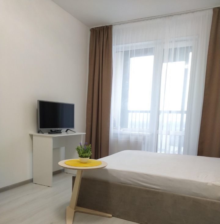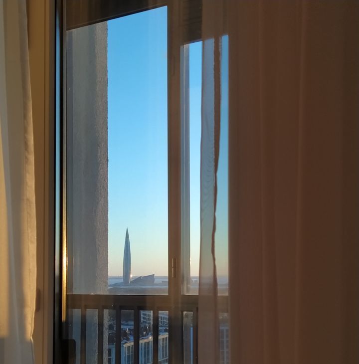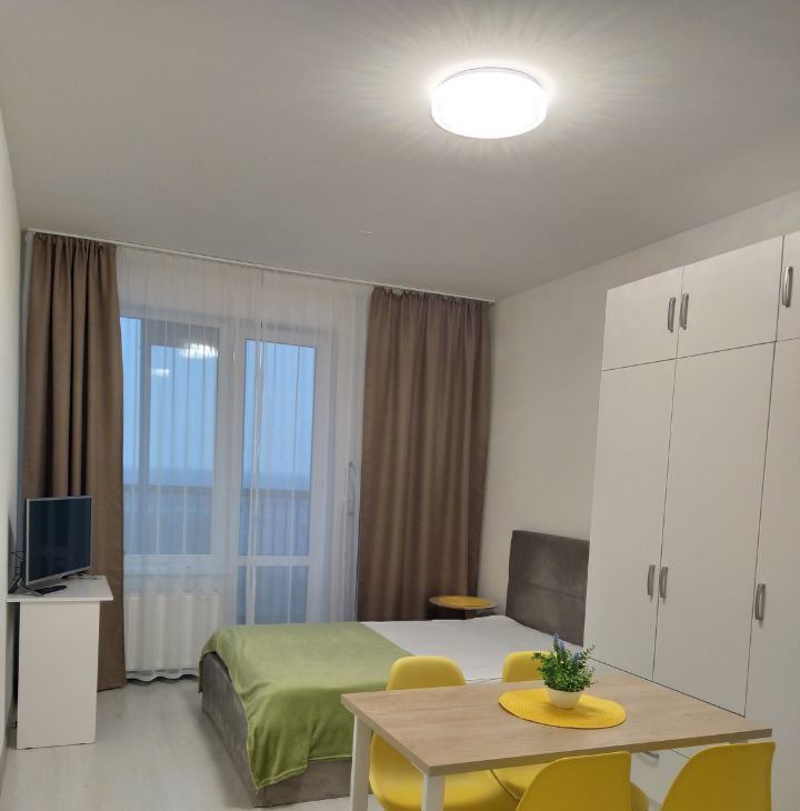 Сдаётся уютная студия в новом доме. Квартира расположена на 21 этаже с окнами, выходящими на улицу с видом на Лахта центр и флакштоки в парке 300 летия. До метро можно добраться за 10 минут на автомобиле. остановка общественного транспорта под домом и через дорогу.