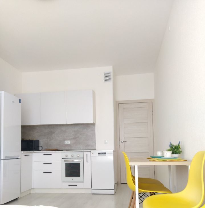 современная мебель на кухне и в комнате, а также полный набор техники, включая холодильник, посудомоечную и стиральную машины, телевизор. Ванная комната оборудована душевой кабиной. В квартире также есть лоджия, где можно наслаждаться свежим воздухом.
