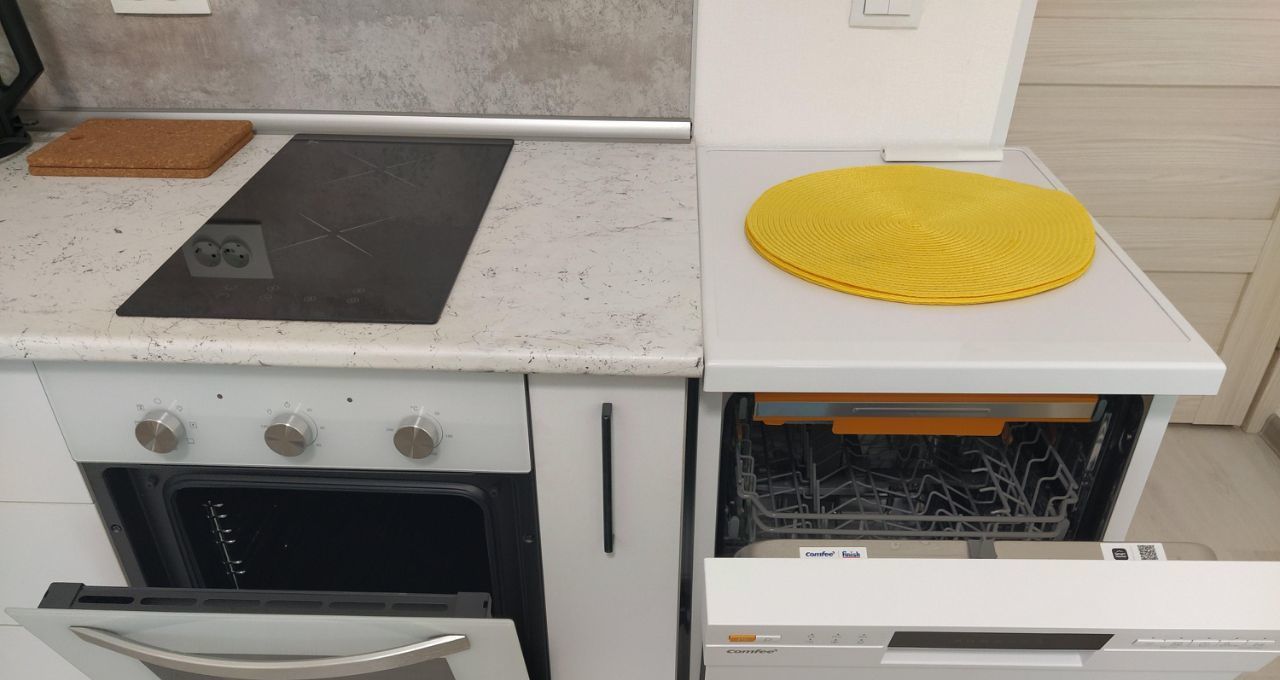 современная мебель на кухне и в комнате, а также полный набор техники, включая холодильник, посудомоечную и стиральную машины, телевизор. Ванная комната оборудована душевой кабиной. есть большая лоджия.