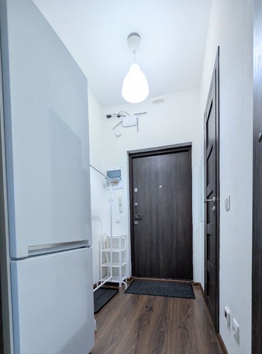 Тут есть всё необходимое - удобная кровать, а не диван, встраиваемая современная техника, холодильник стоит в коридоре и не занимает лишнего места в комнате. Есть также посудомоечная машина. Большой вместительный шкаф. В квартире есть просторный балкон с красивым видом из окон 18 этажа. В ванне душевая кабина и стиральная машинка. В шаговой доступности много магазинов и ресторанов.