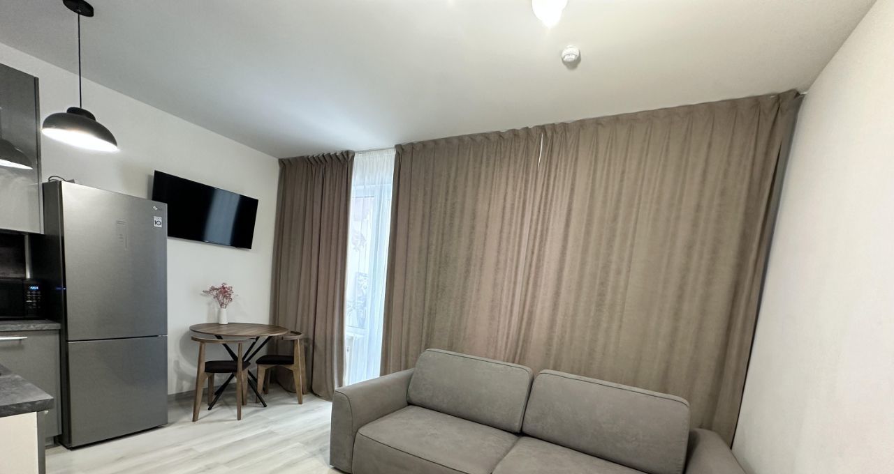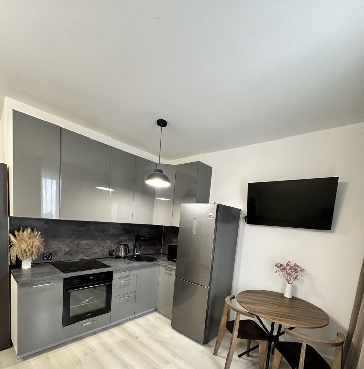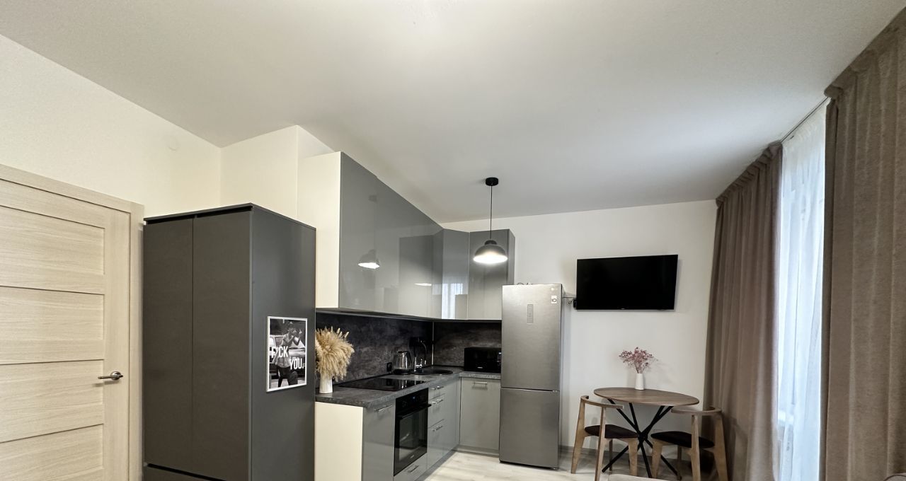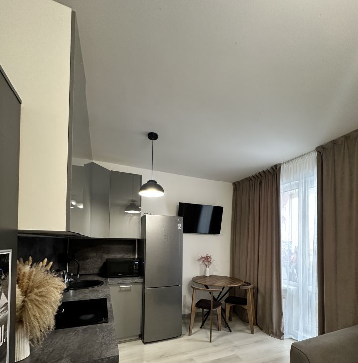 Сдаётся стильная студия с ремонтом под себя в Чистом небе. В квартире есть всё необходимое для проживания и сдаётся впервые. Просторная кухня оборудована всем необходимым холодильник, посудомойка, микроволновка , духовка , плита, чайник. В комнате установлен телевизор и огромный раскладной диван 200 на 220 с комфортным спальным местом. Из мебели также есть вместительный шкаф.