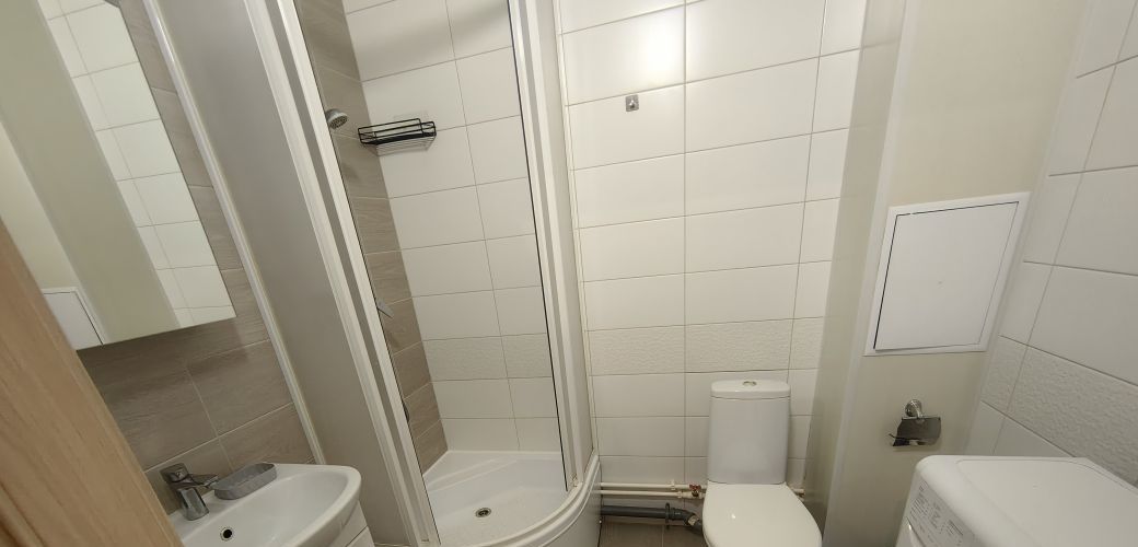 Квартира выполнена в стиле "евроремонт", с мебелью и всей необходимой бытовой техникой. Имеются холодильник, микроволновка, стиральная машина. В санузле установлена душевая кабина, что делает проживание ещё более комфортным.