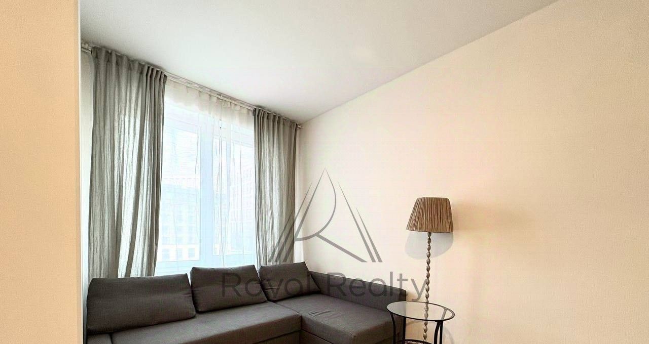 Квартира — светлая и уютная студия с лоджией, выполненная в современном дизайнерском стиле. В комнате установлен удобный диван, дополнительно предусмотрен матрас для комфортного сна.