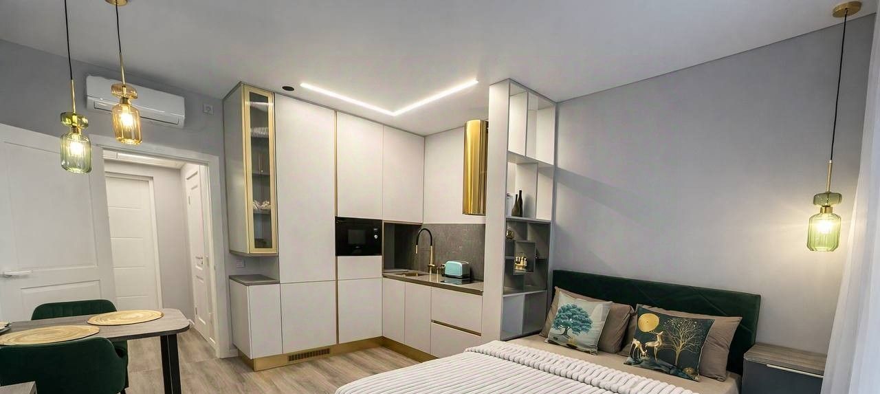 Просторная студия "заезжай и живи", с выделенной зоной кухни и двухместной кроватью ждет своих жильцов!