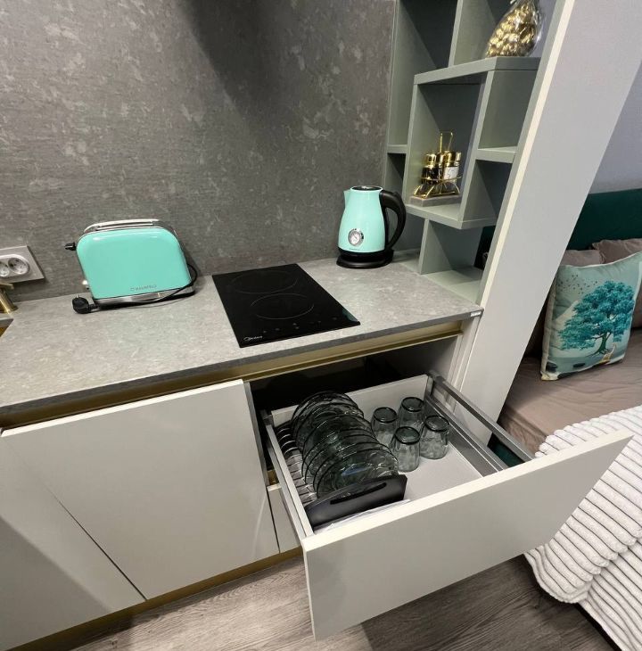 Кухня: полностью оборудована — варочная поверхность, холодильник, посудомоечная машина, микроволновая печь, чайник, тостер, капсульная кофемашина