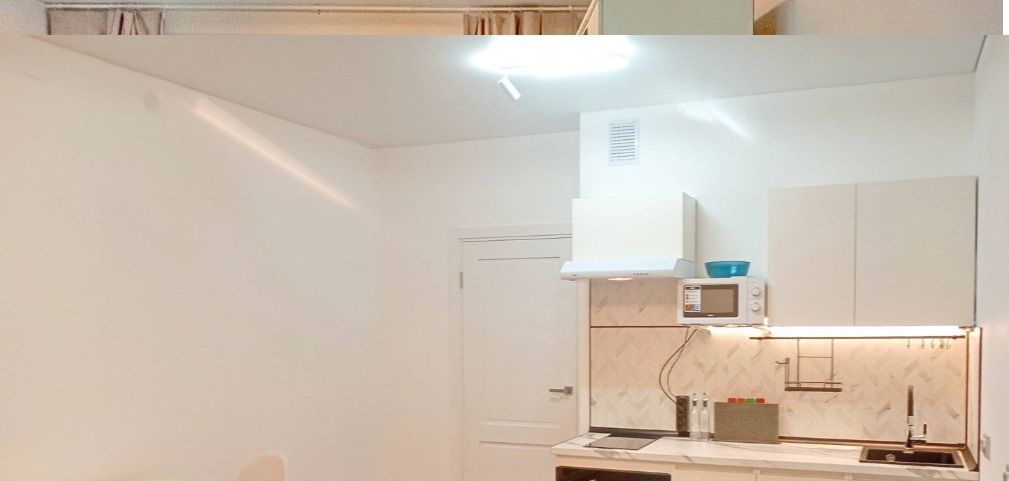 Двуспальная кровать с большими ящиками для хранения вещей и хорошим ортопедические матрасом (у самого больная спина, поэтому к матрасу подошел серьезно). Огромный шкаф с зеркалами ( объем 2 м3) 4 створки, кухня, холодильник, стиралка, индукционная плита стеклокерамика с духовкой, посуда. Потолочные светильники с тремя режимами освещения, кухня с подсветкой.