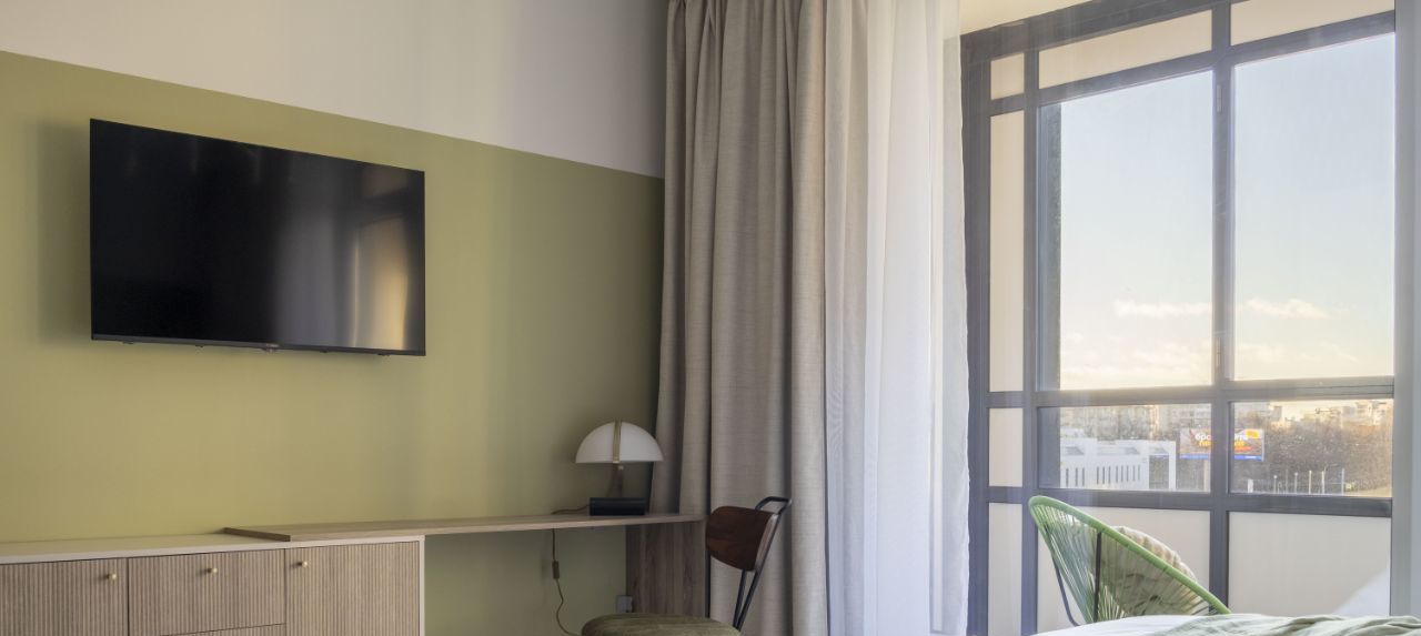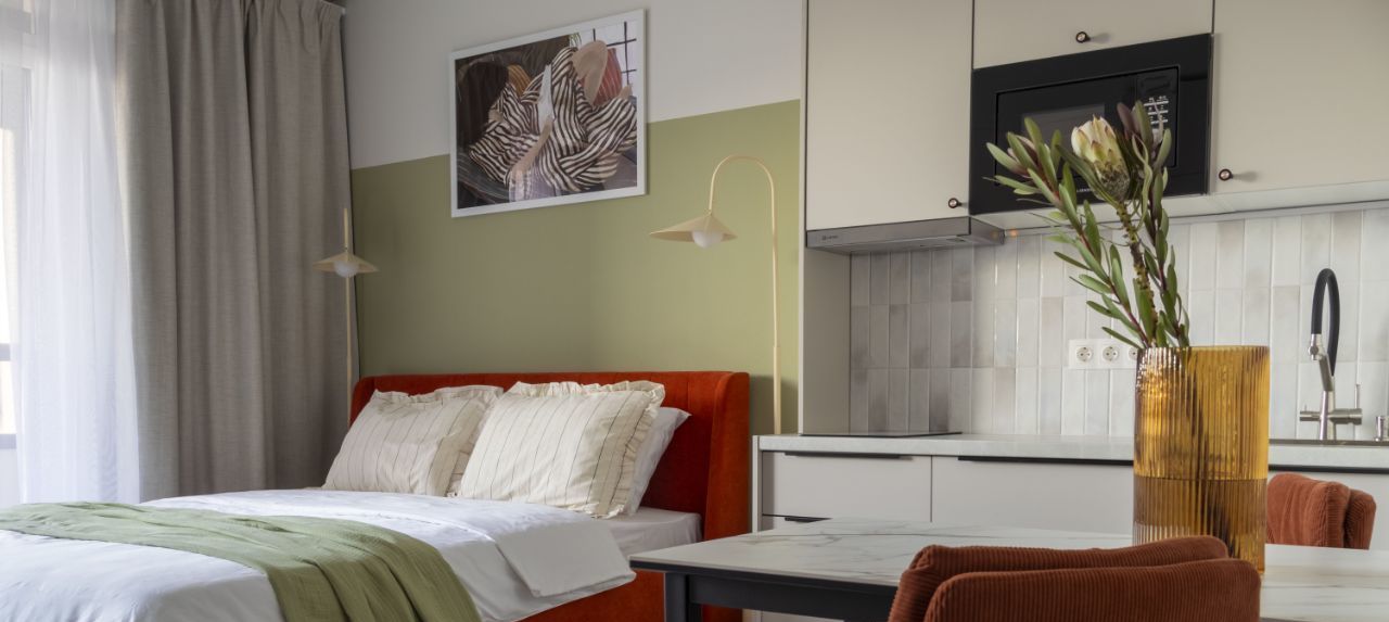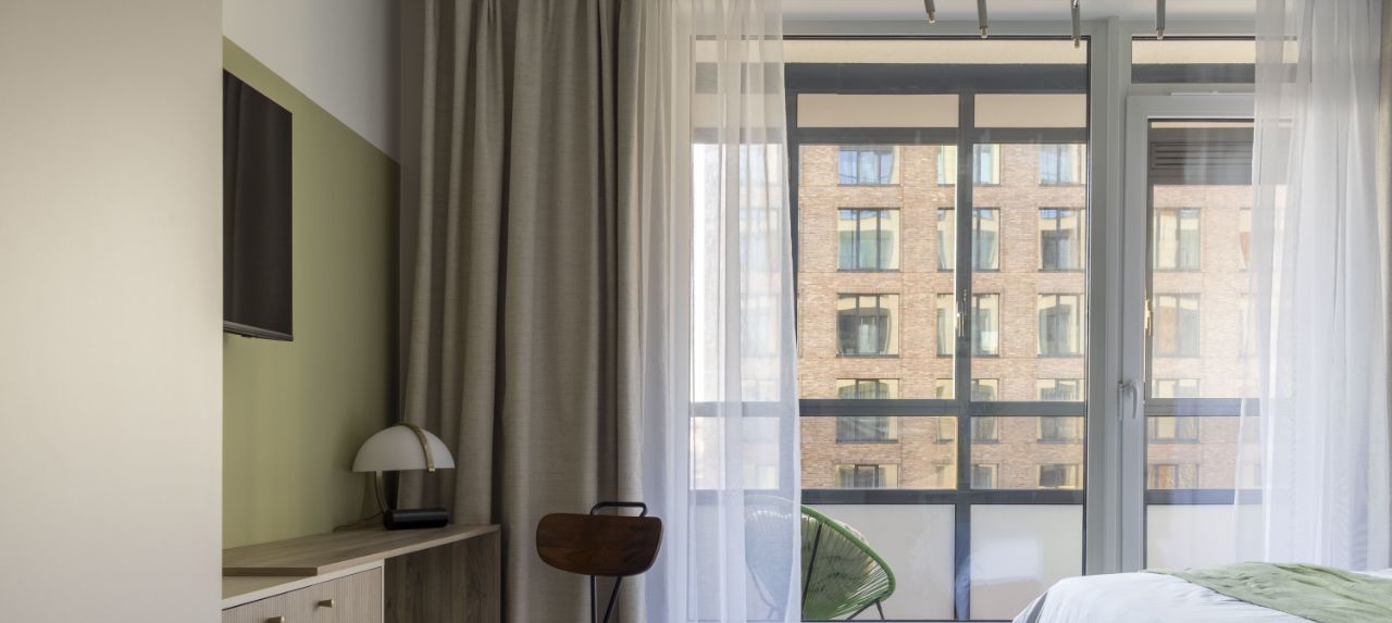Сдается ВПЕРВЫЕ уютная студия с панорамным окном, что дает ощущение воздуха и света, в ЖК высокого комфорт-класса Амбер Клаб
