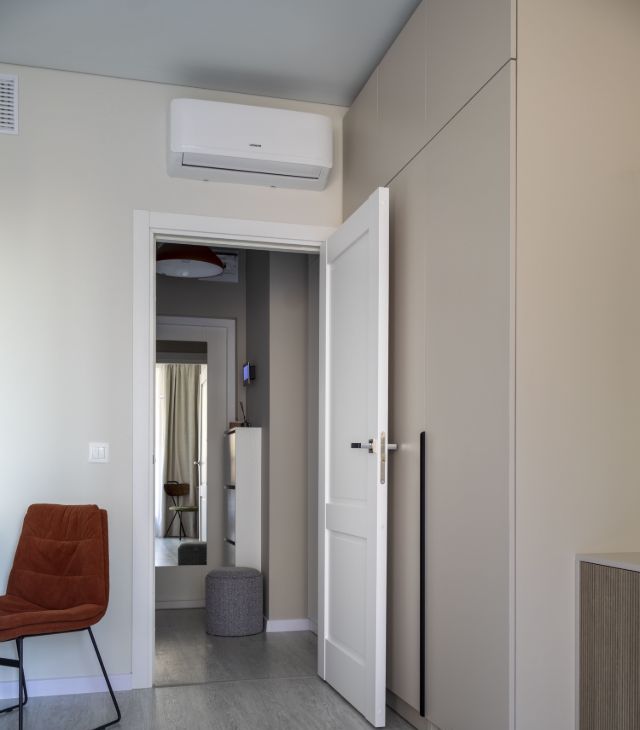 Кондиционер ( блок в сплит шахте, что позволяет убрать не нужные звуки и оставить место на балконе для функционального использования: хоть кофе по утрам пить, хоть провожать закаты с бокалом вина, хоть работать с ноутом)