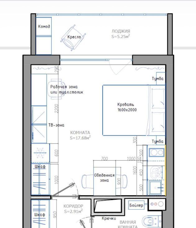 Студия Санкт-Петербург Уральская ул., 25 (24.1 м²)