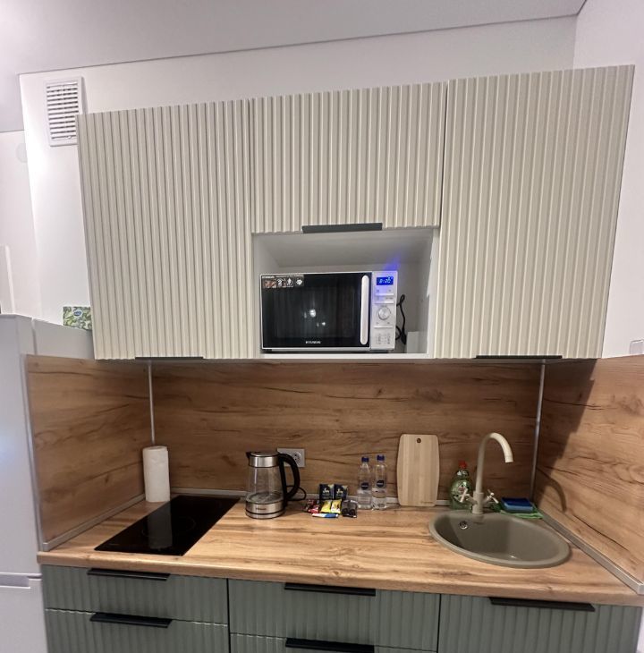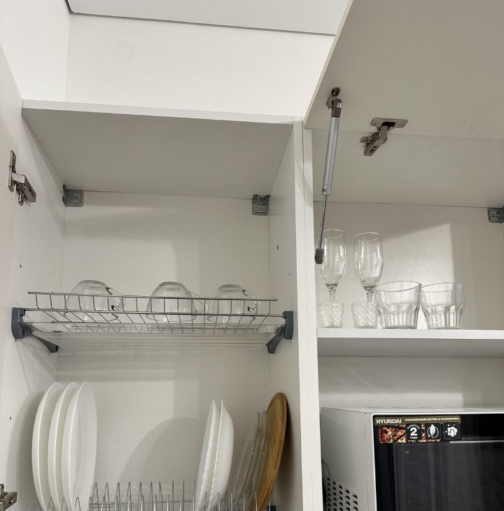 Техника (телевизор 32 дюйма , варочная панель, холодильник, стиральная машина, микроволновая печь, электрочайник, фен, паровой утюг);