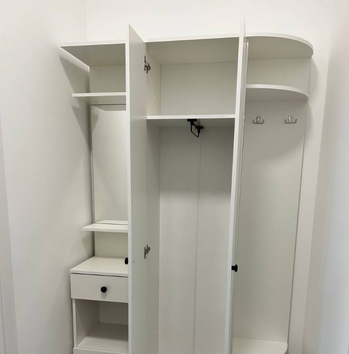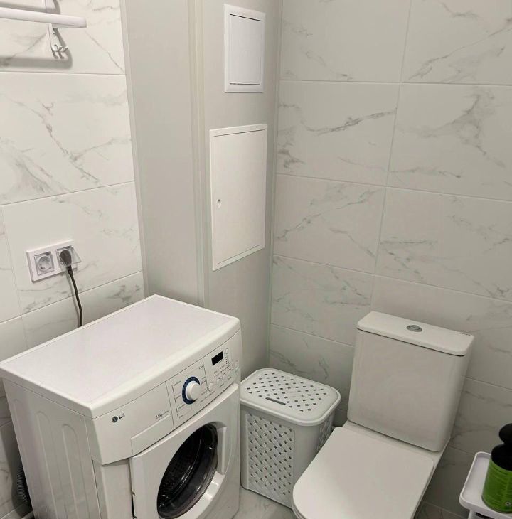 В квартире есть все необходимое для жизни: раскладной диван на 2 спальных места (пружинный блок как в кроватях для удобства) 2 шкафа, 1 комод, стиральная машинка, утюг, чайник, микроволновка, сушилка.