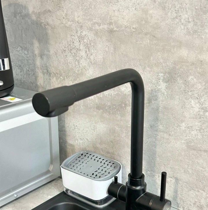 За счет грамотной планировки и 3х метровых потолков студия выглядит просторной и уютной, нет ощущения скованности и нагроможденности.
