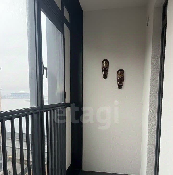 В квартире есть балкон с панорамными окнами, где можно насладиться свежим воздухом и прекрасными видами Малой Невы и Газпром-арены.