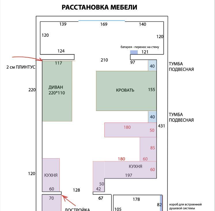 Площадь: 36 м² (29,9 м² + присоединена и утеплена лоджия 6 м²)