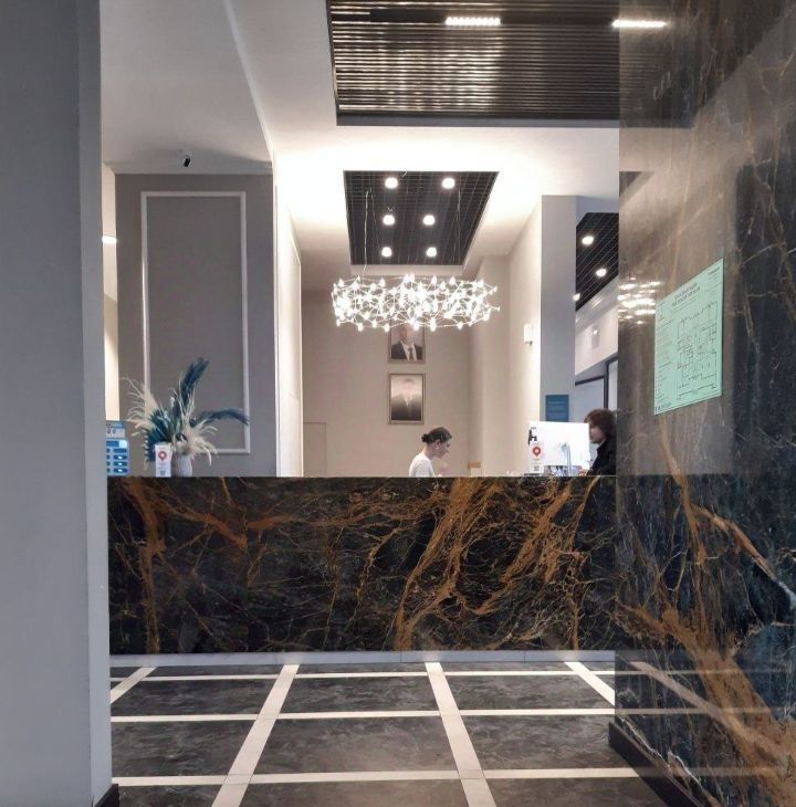На первом этаже ресепшен , охрана , прачечная , кафе и автоматы по продаже продуктов питания ,кофе , чая . Ресторан, кинотеатр, фитнес зал. Можно на короткий срок.