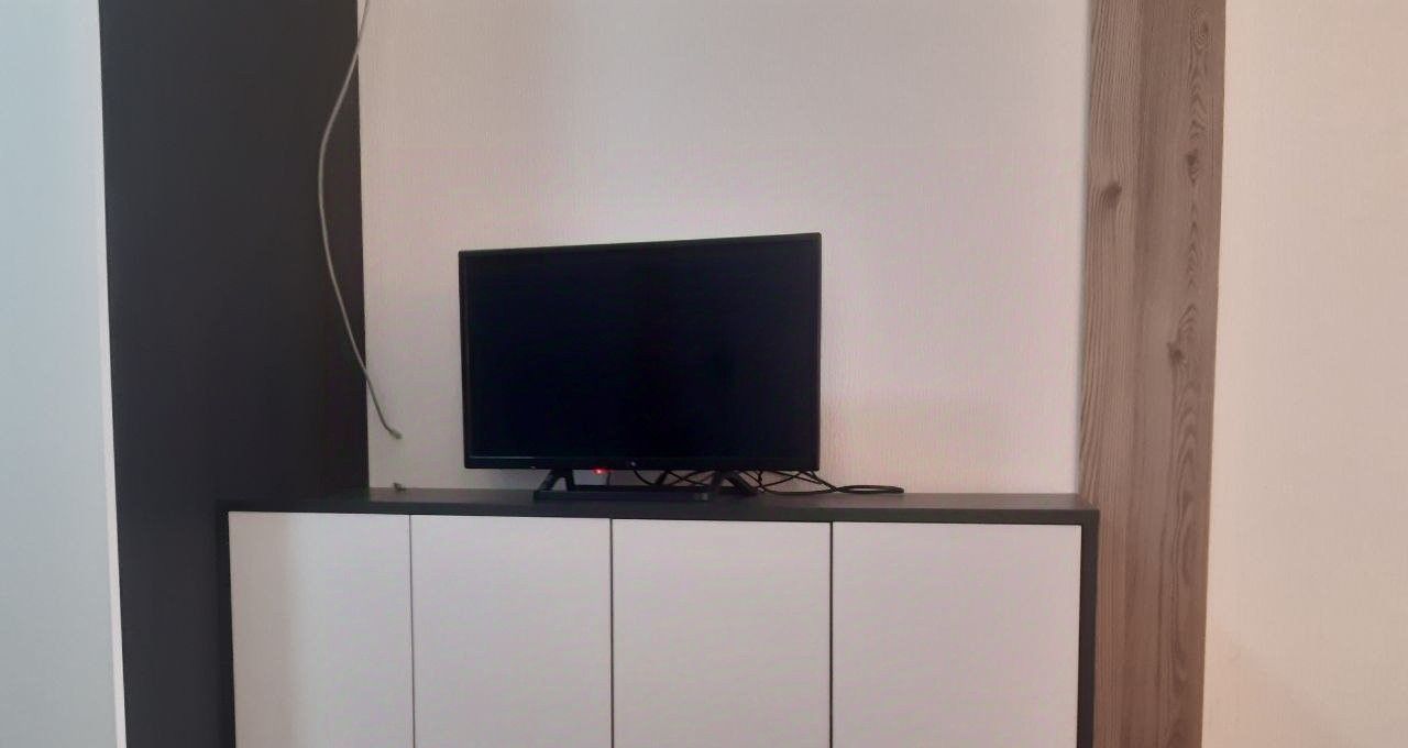 В студии имеется раскладной двуспальный диван, шкафы для одежды , комод , а так же кухонная мебель , большой холодильник, свч, электрическая плита, вытяжка, большой стол, 2 кресла, телевизор, электрический чайник, вся посуда, кухонные принадлежности, пастельное белье, сушилка для белья. Санузел совмещенный, душевая кабина . Имеется интернет.