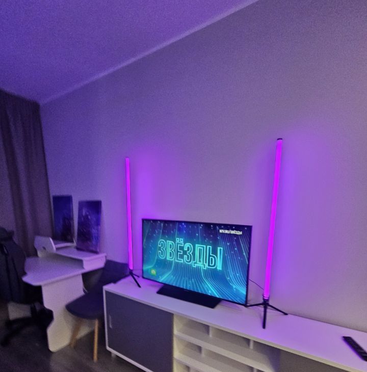 Атмосфера уюта и релакса. Продуманный дизайн с современной подсветкой: уютная подсветка изголовья кровати создает идеальную атмосферу для отдыха, а стильная подсветка за телевизором превращает вечерний просмотр в кинематографическое удовольствие.