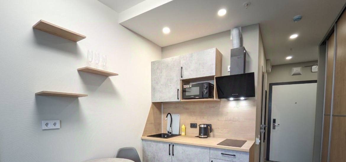 Сдаётся уютная и современная студия в новом апарт-комплексе. Продуманный дизайнерский ремонт выполнен со вкусом, использованы качественные материалы. Всё по-настоящему новое — заезжайте и живите с комфортом!