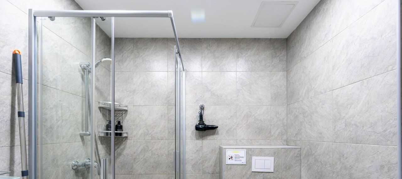 - В ванной комнате: туалет, душ, стиральная машина, фен, утюг.