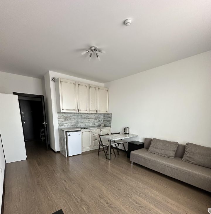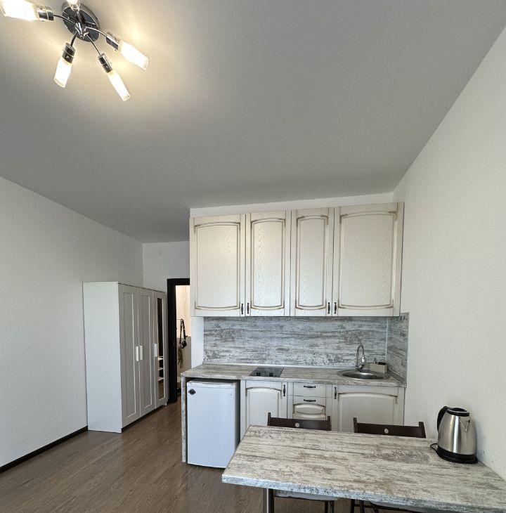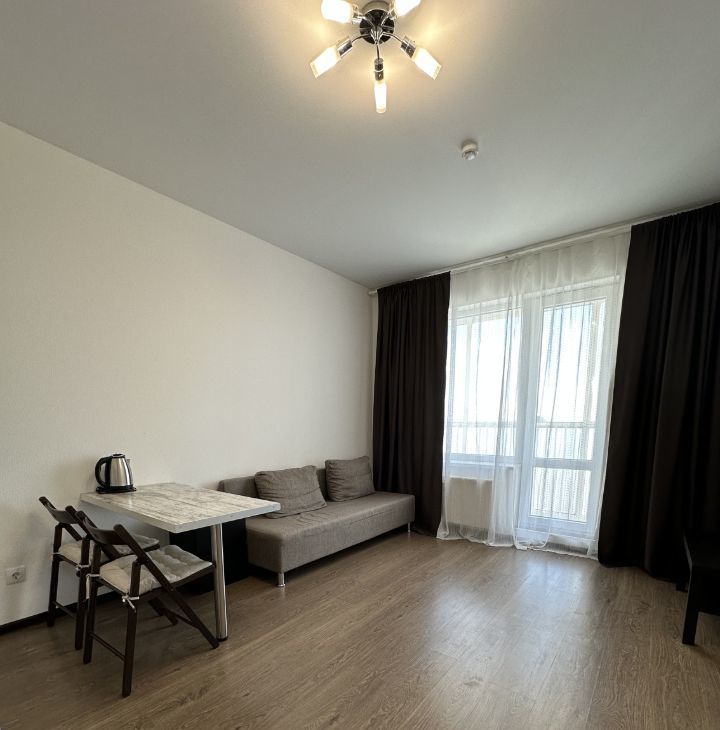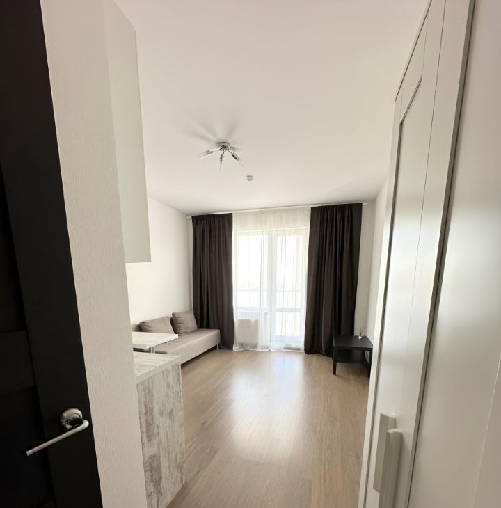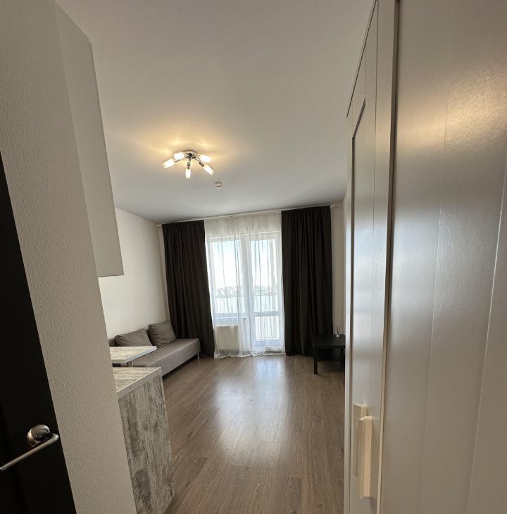 Сдаётся уютная студия с евроремонтом в современном доме 2019 года постройки. Квартира расположена на 18-м этаже 25-этажного здания и занимает 26 кв.м, из которых 20 кв.м — жилая площадь. Высокие потолки 2.75 метра создают ощущение простора, а окна, выходящие на улицу, наполняют квартиру светом.