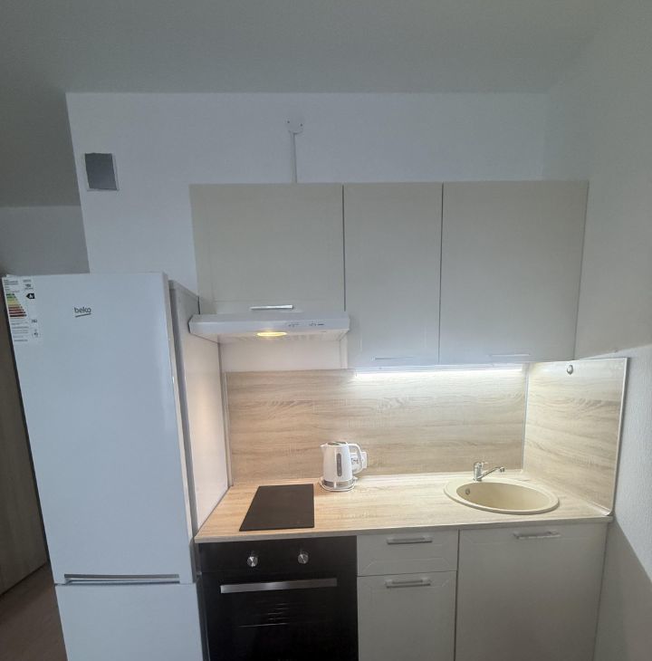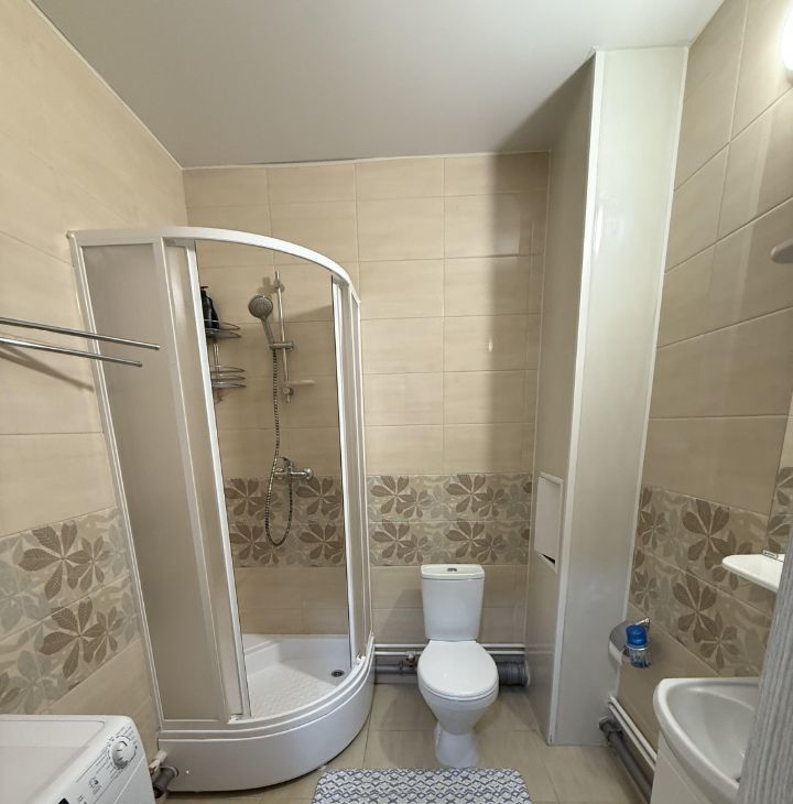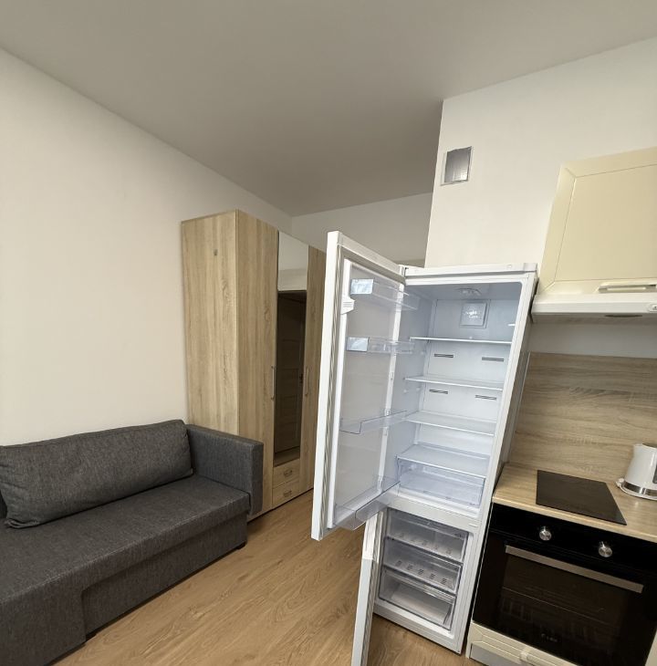 Диван икеа ( раздвижной ) , вытяжка , духовка, электро -плита, холодильник, шкаф, телевизор, пылесос, электрочайник, утюг, микроволновка, стиральная машина ( новая ) , много места для хранения в коридоре и в комнате .