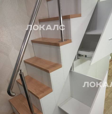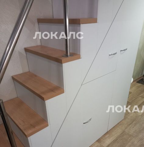 Очень много шкафов, в отличие от большинства студий в центре. Также отличает очень удобная лестница на 2ой этаж - легко и безопасно спуститься даже в полусне.